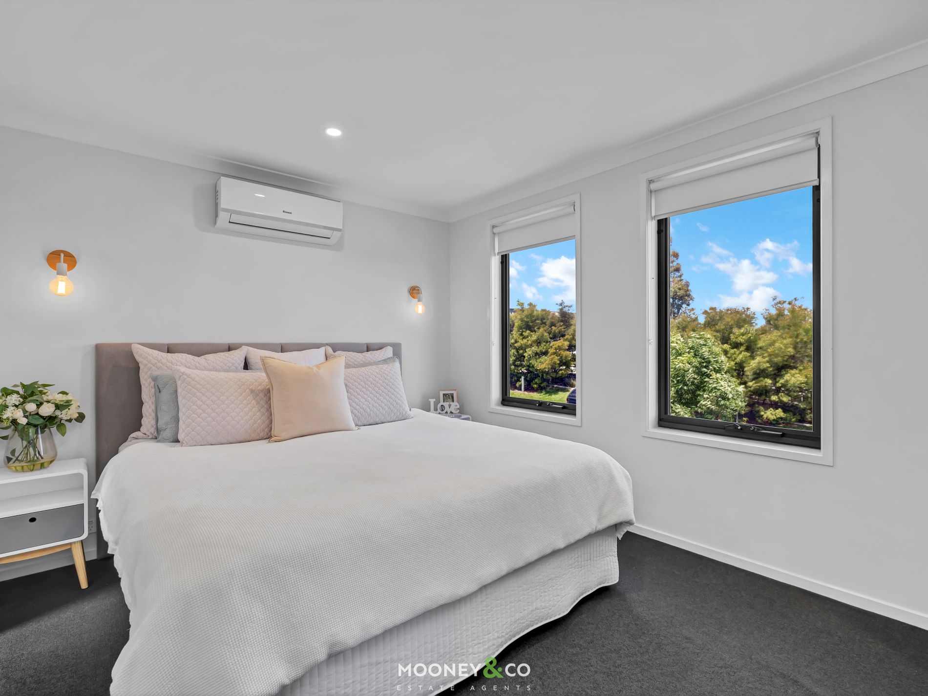 Upstairs, the bedroom level continues the sense of comfort and clever design. The main suite is a standout, spacious enough for a king-size bed and framed by two picture windows that capture leafy views. With its walk in robe and fresh private ensuite, it’s a space that feels genuinely indulgent. Bedrooms two and three are equally well presented, each with built in robes and plenty of natural light, making them perfect for children, guests or extended family. The bathrooms are immaculate, with the main bathroom offering a shower, modern vanity and separate bathtub, while the ensuite delivers a clean, contemporary finish with an oversized shower.